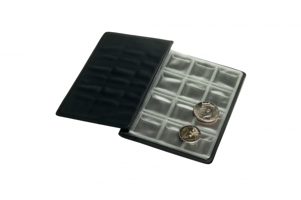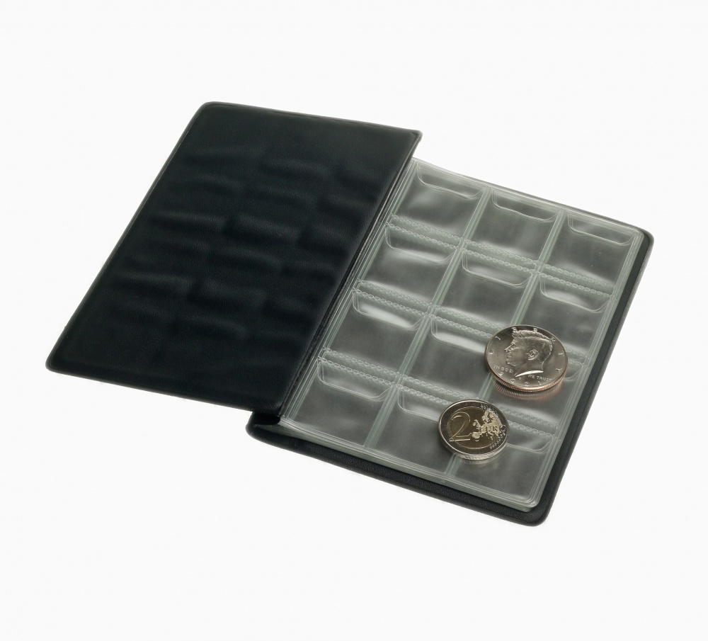 Он имеет небольшой формат, легко помещается в карман и позволяет упорядочить монеты выбранным вами способом сортировки с помощью надежных ячеек с козырьками.