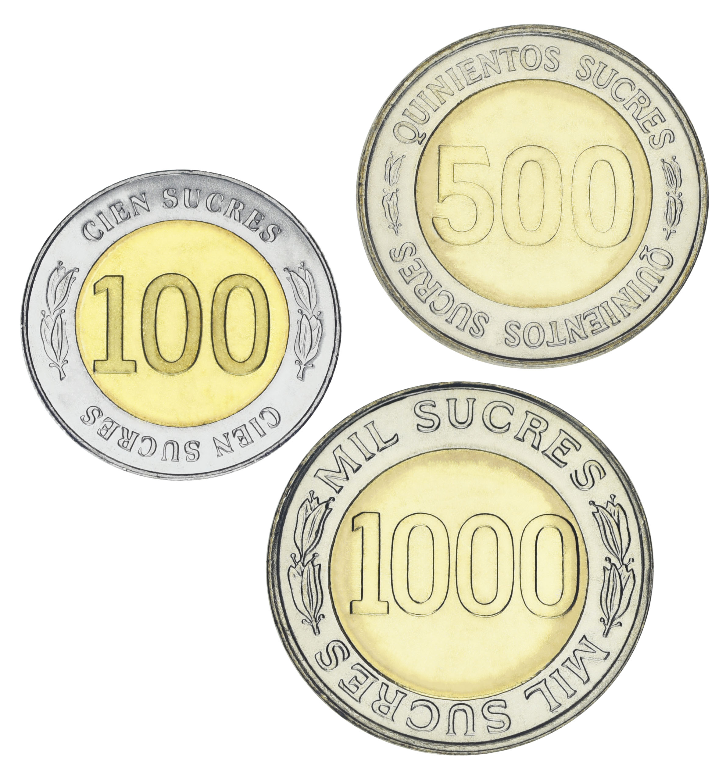 Эквадор набор из 3 монет 1997 Биметалл UNC 70 лет Центральному банку 100, 500, 1000 сукре