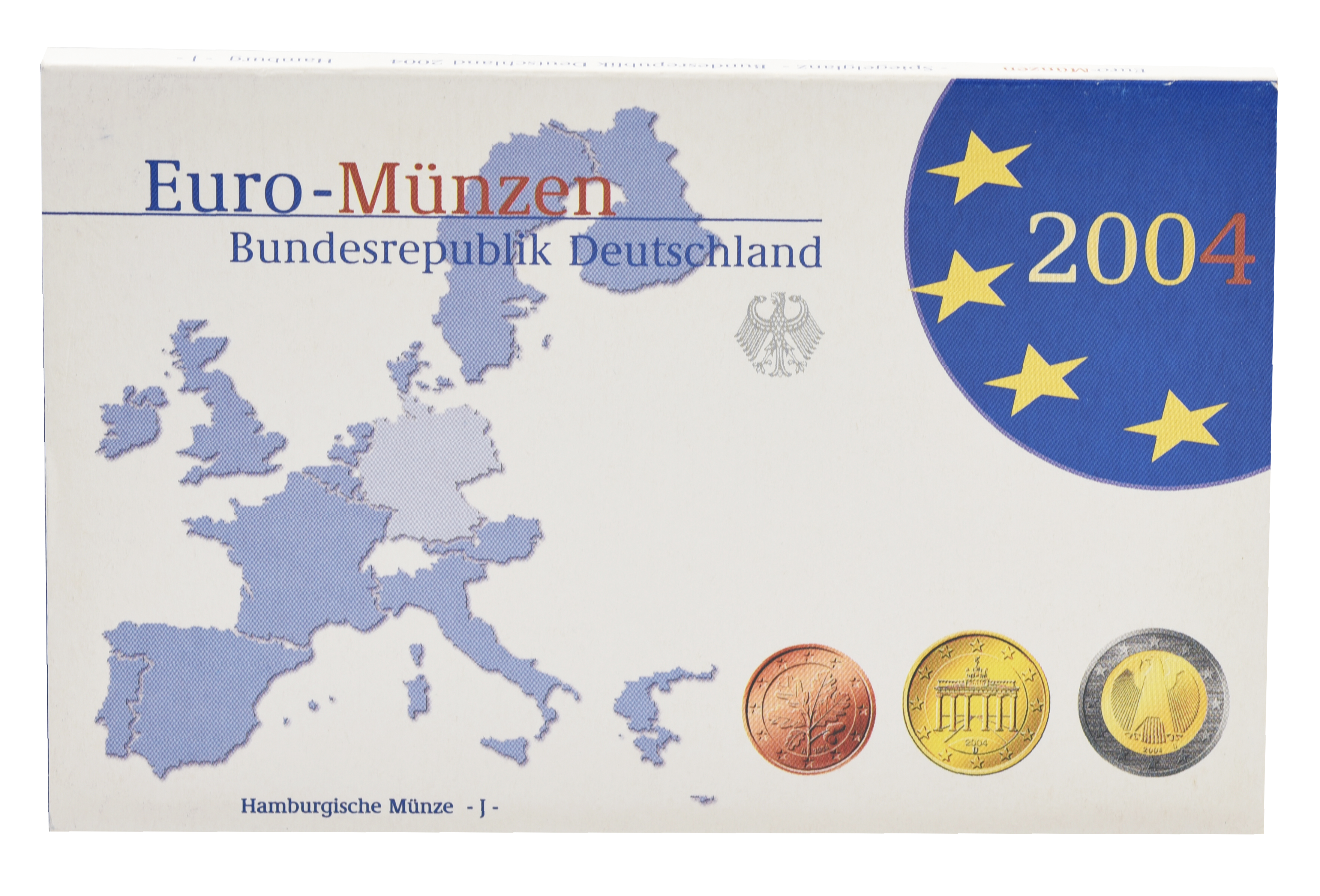Германия набор из 8 монет евро 2004 UNC J 1, 2, 5, 10, 20, 50 евроцентов, 1, 2 евро в сувенирной упаковке