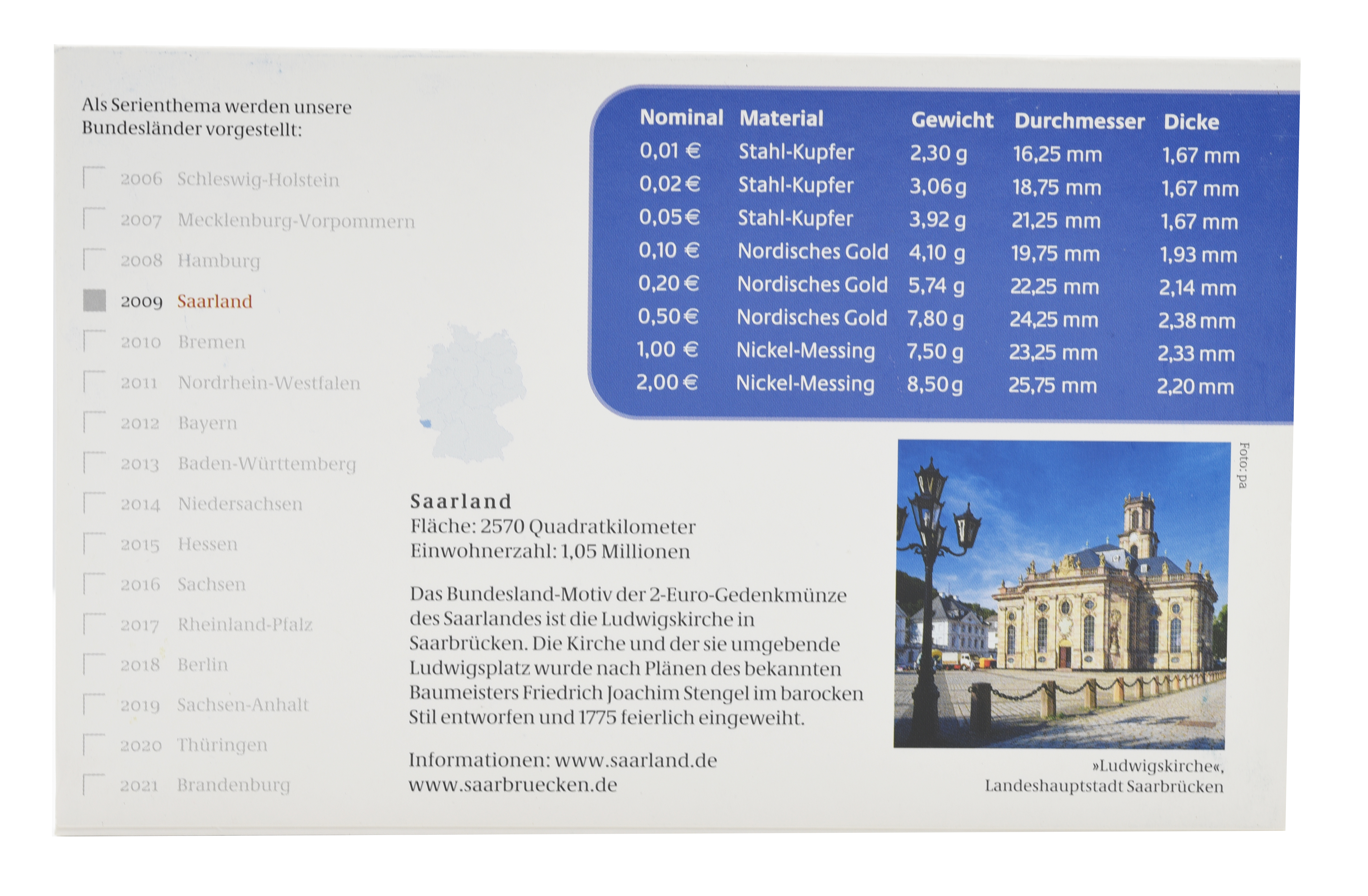 Германия набор из 9 монет евро 2009 UNC G 1, 2, 5, 10, 20, 50 евроцентов, 1, 2 евро, памятная 2 евро Блистер