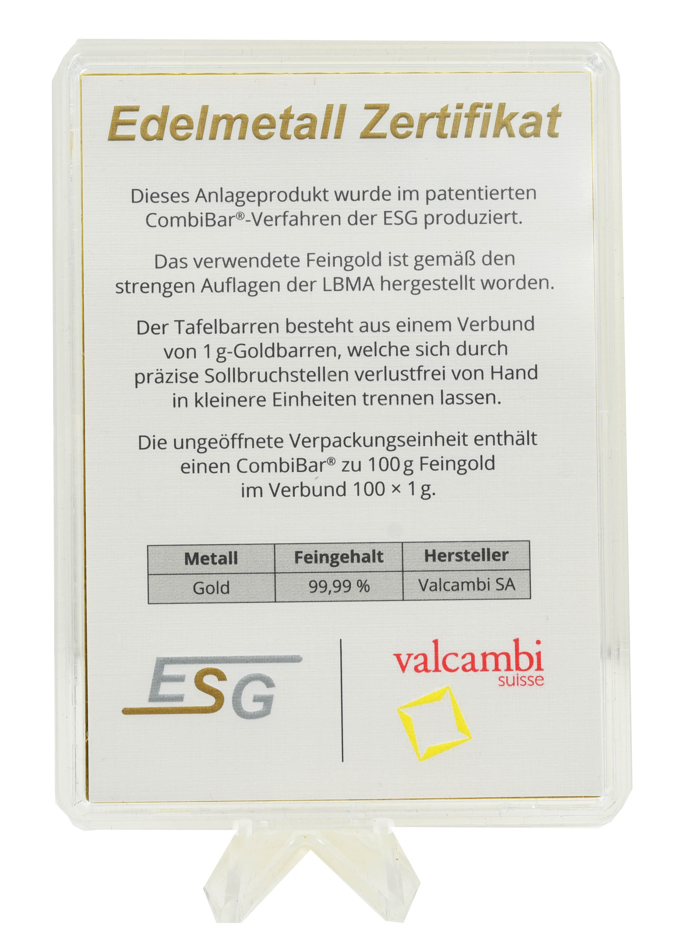 Valcambi – это международная компания по переработке драгоценных металлов, расположенная в Балерне, Швейцария. Компания славится своим высоким качеством продукции, инновационными подходами к производству и безупречной репутацией на мировом рынке, так как входит в число крупнейших в мире предприятий по переработке драгоценных металлов. Кроме того, компания предоставляет услуги по анализу, транспортировке и хранению изделий из драгоценных металлов.