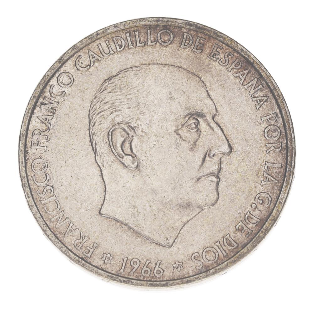 Испания 100 песет 1966 Серебро F-VF Франсиско Франко (Ag 800, 19 грамм)