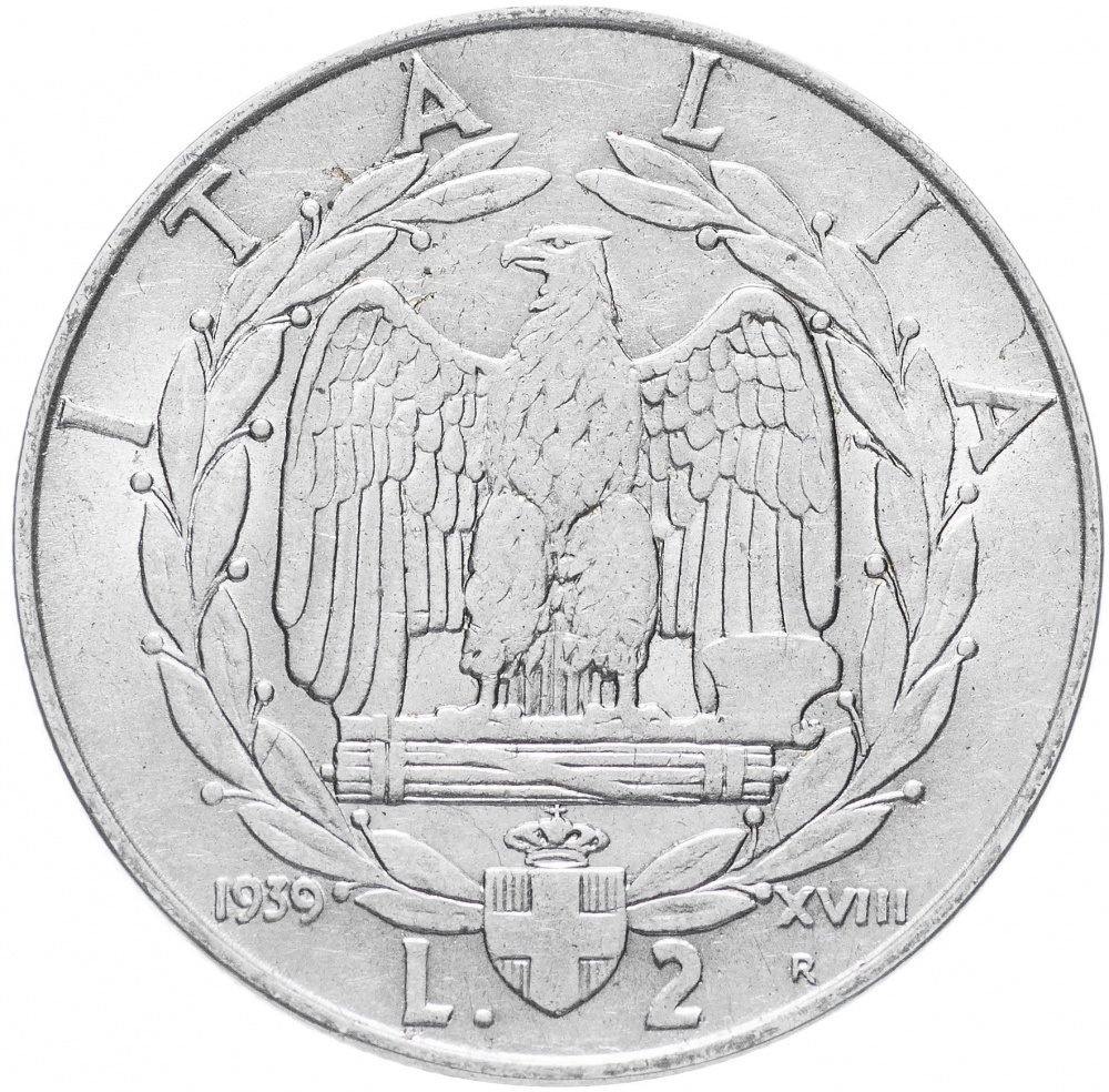 Италия 2 лиры 1939 VF (KM#78)