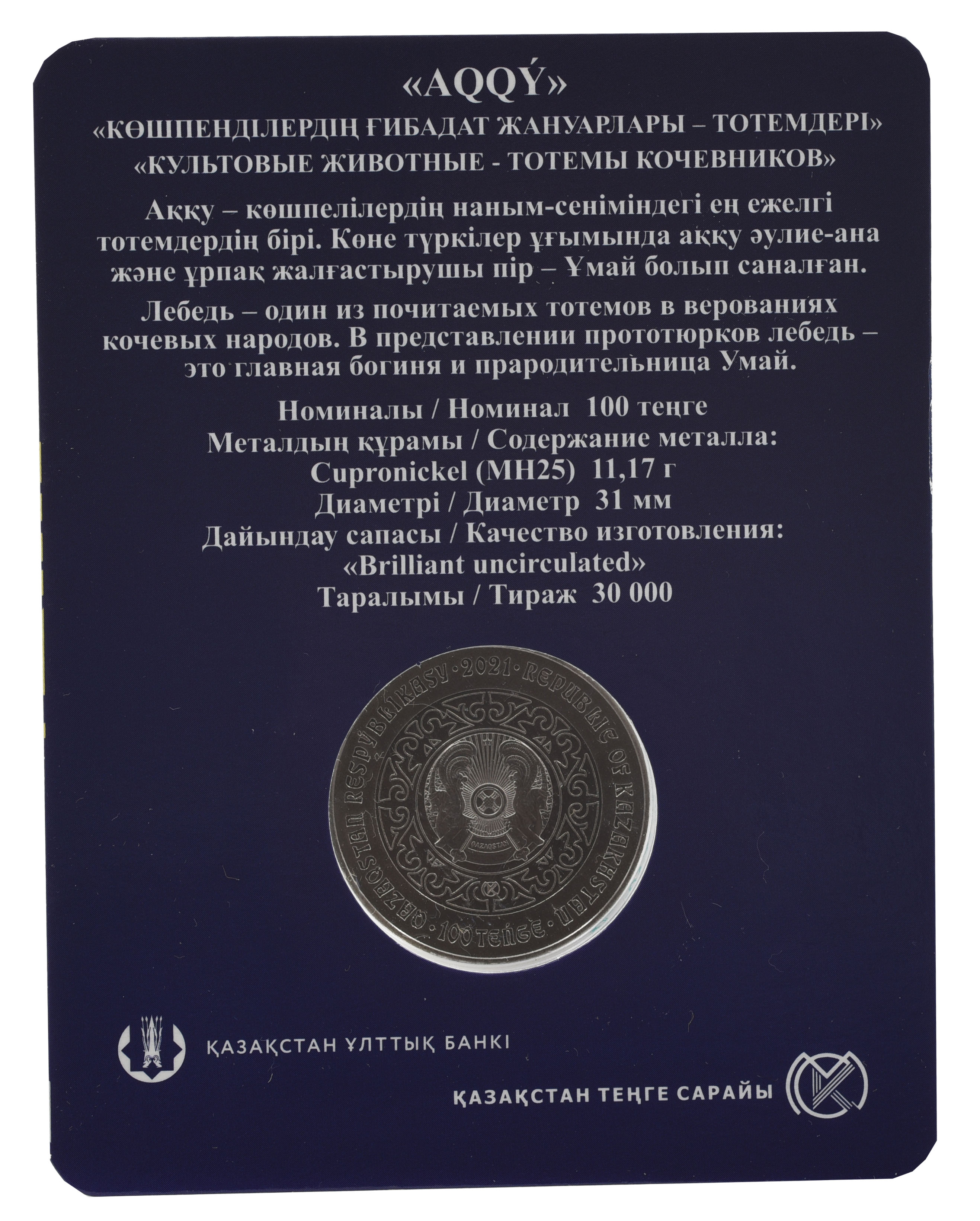 100 TEŃGE 2021 QAZAQSTAN RESPÝBLIKASY REPUBLIC OF KAZAKHSTAN
