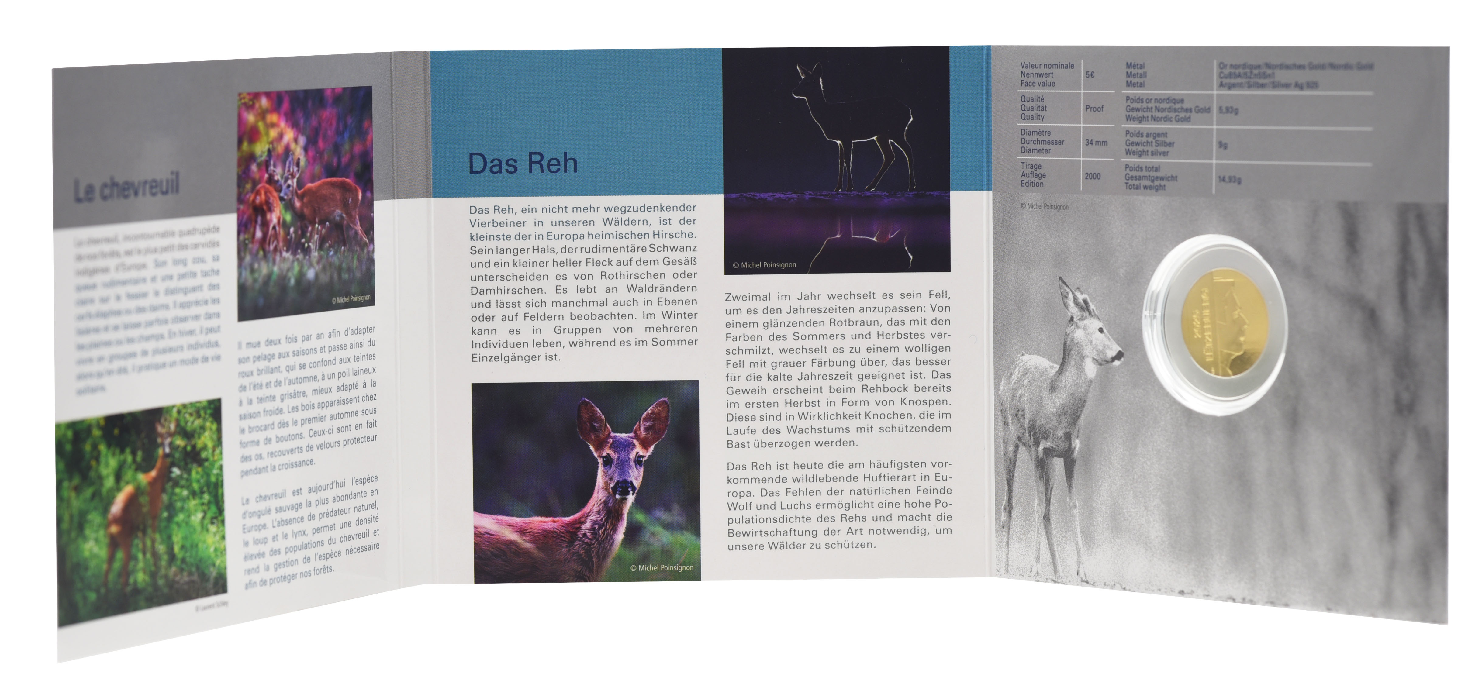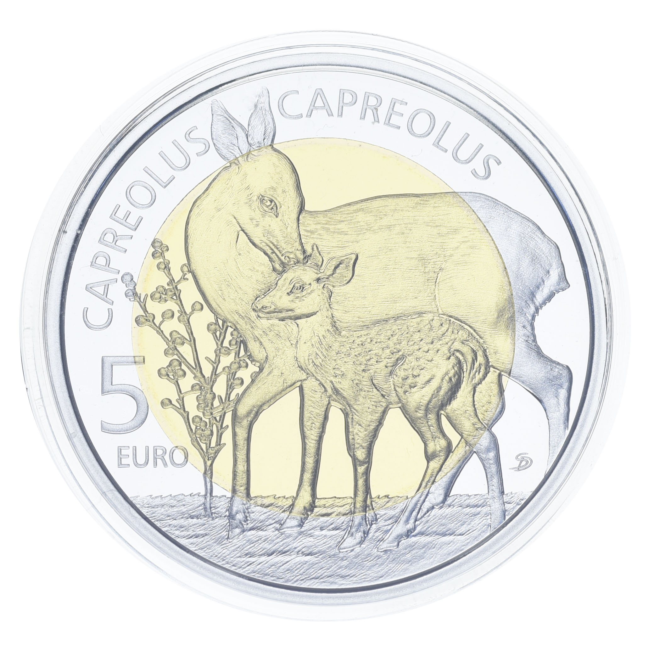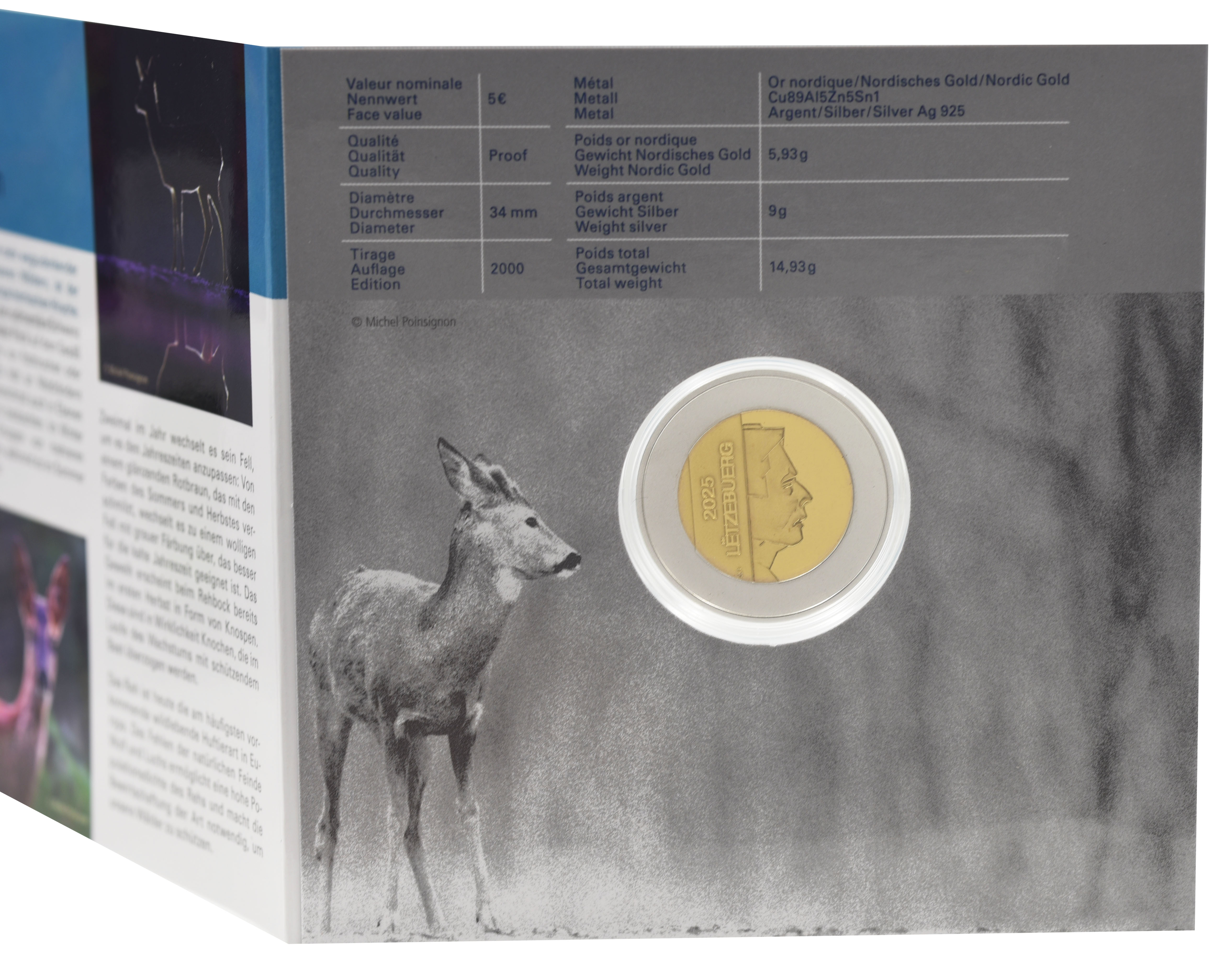 Люксембург 5 евро 2015 Биметалл Серебро Proof Европейская косуля в сувенирной упаковке
