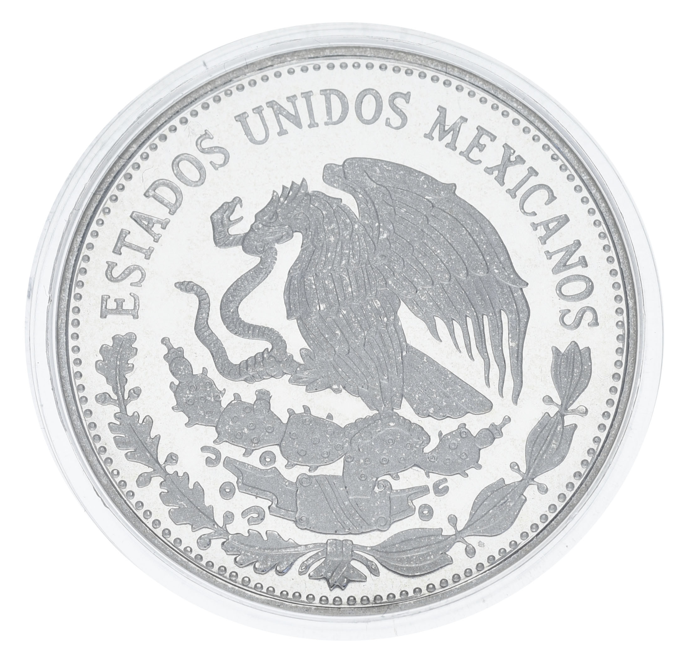 Мексика 50 песо 1985 Серебро UNC Чемпионат мира по футболу в Мексике в 1986 году - Ведение мяча