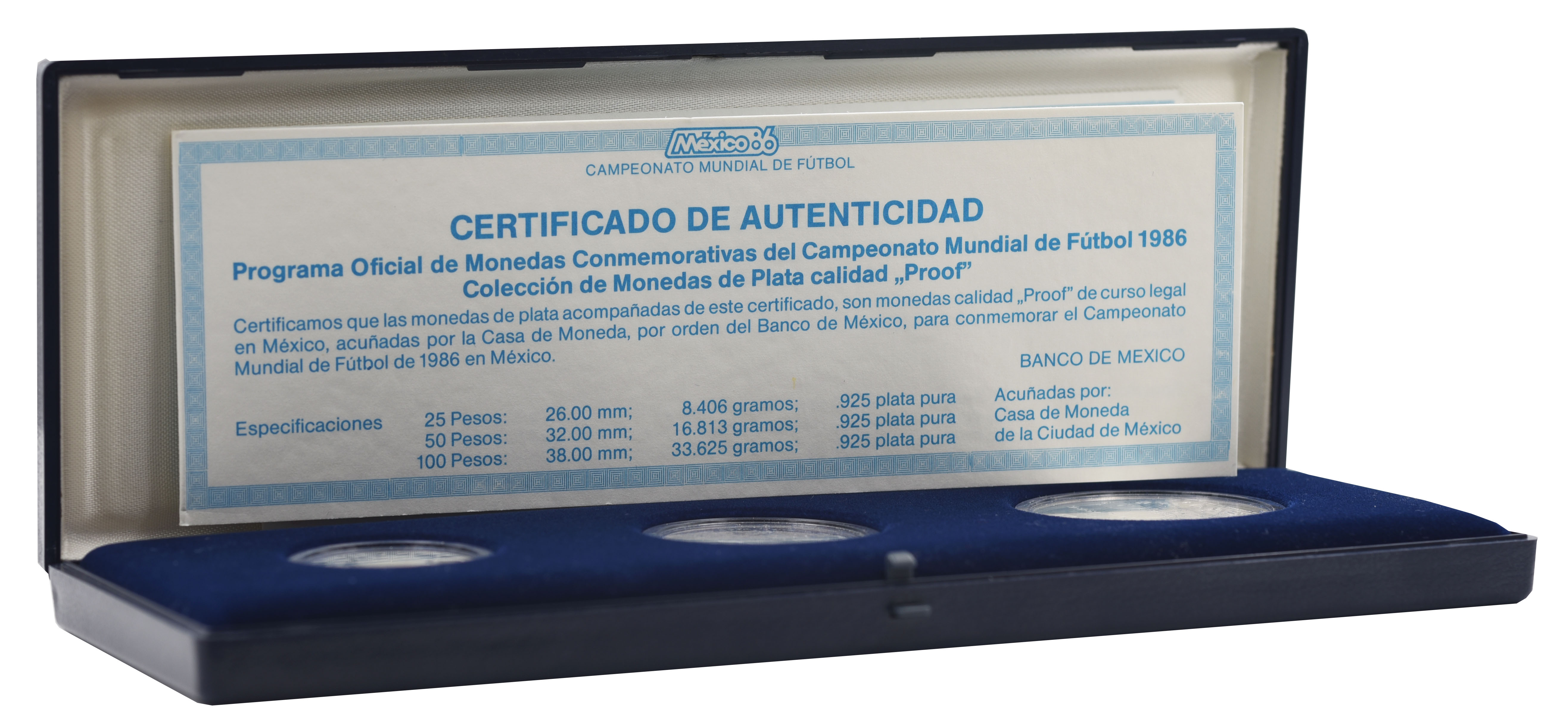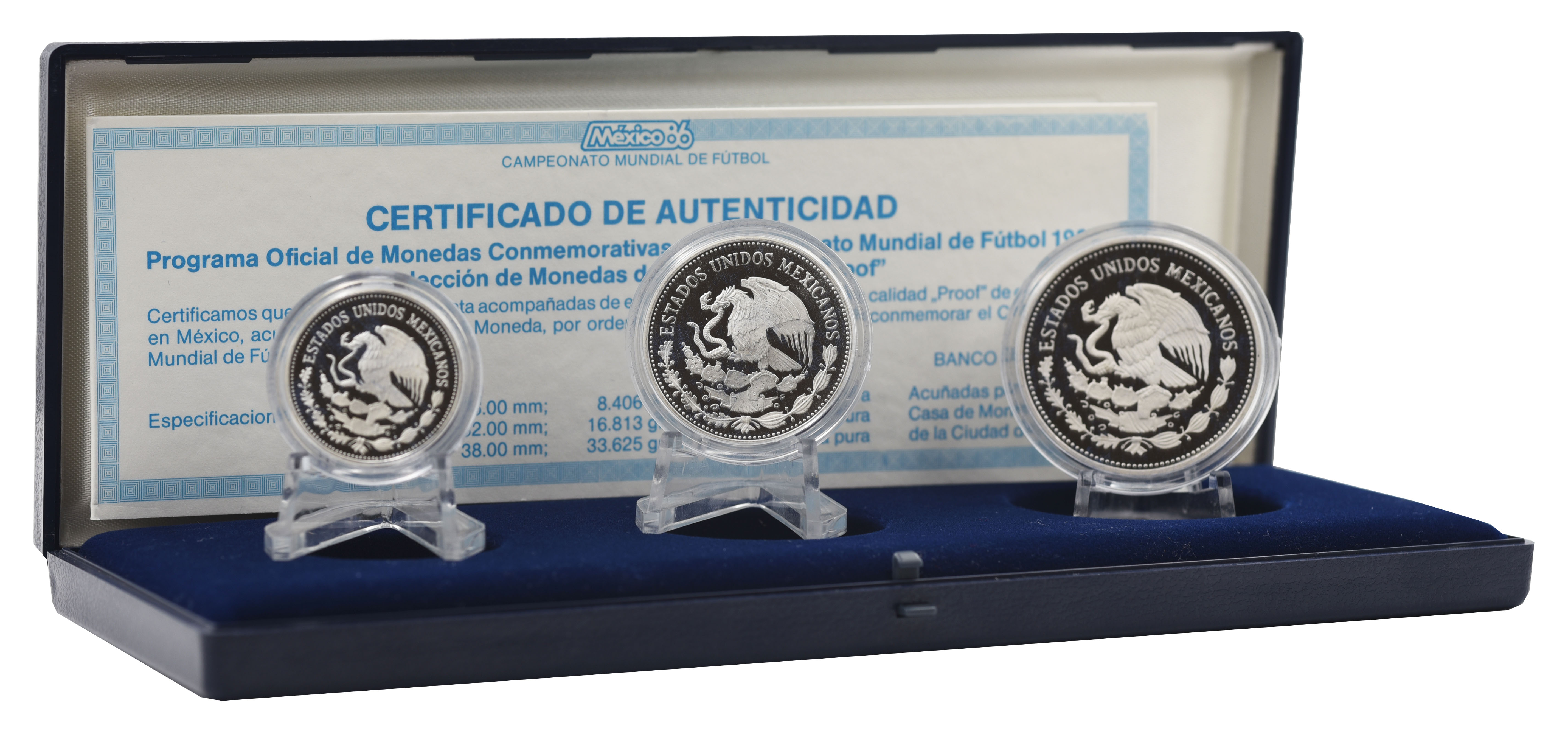 Мексика набор из 3 монет 1986 Серебро Proof Чемпионат мира по футболу в Мексике в 1986 году