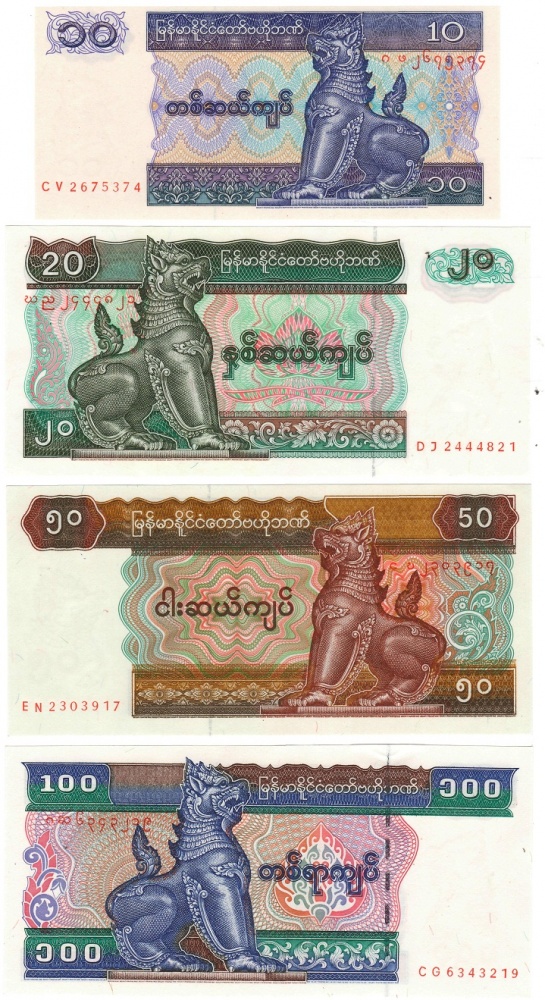 Мьянма (Бирма) набор из 8 банкнот UNC