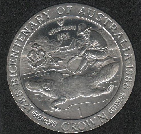 Остров Мэн 1 крона 1988 «200 лет Австралии. Утконос» UNC (KM#224)