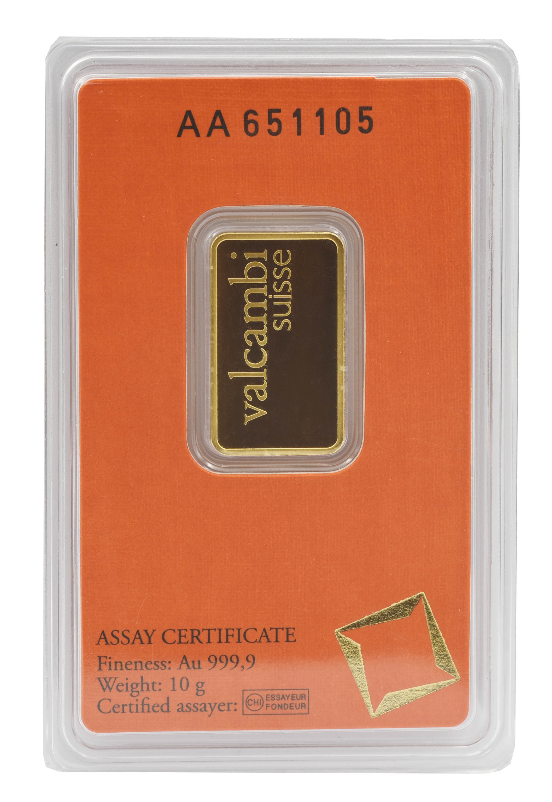 Швейцария Инвестиционный золотой штампованный слиток Золото Au 999,9 10 грамм Valcambi