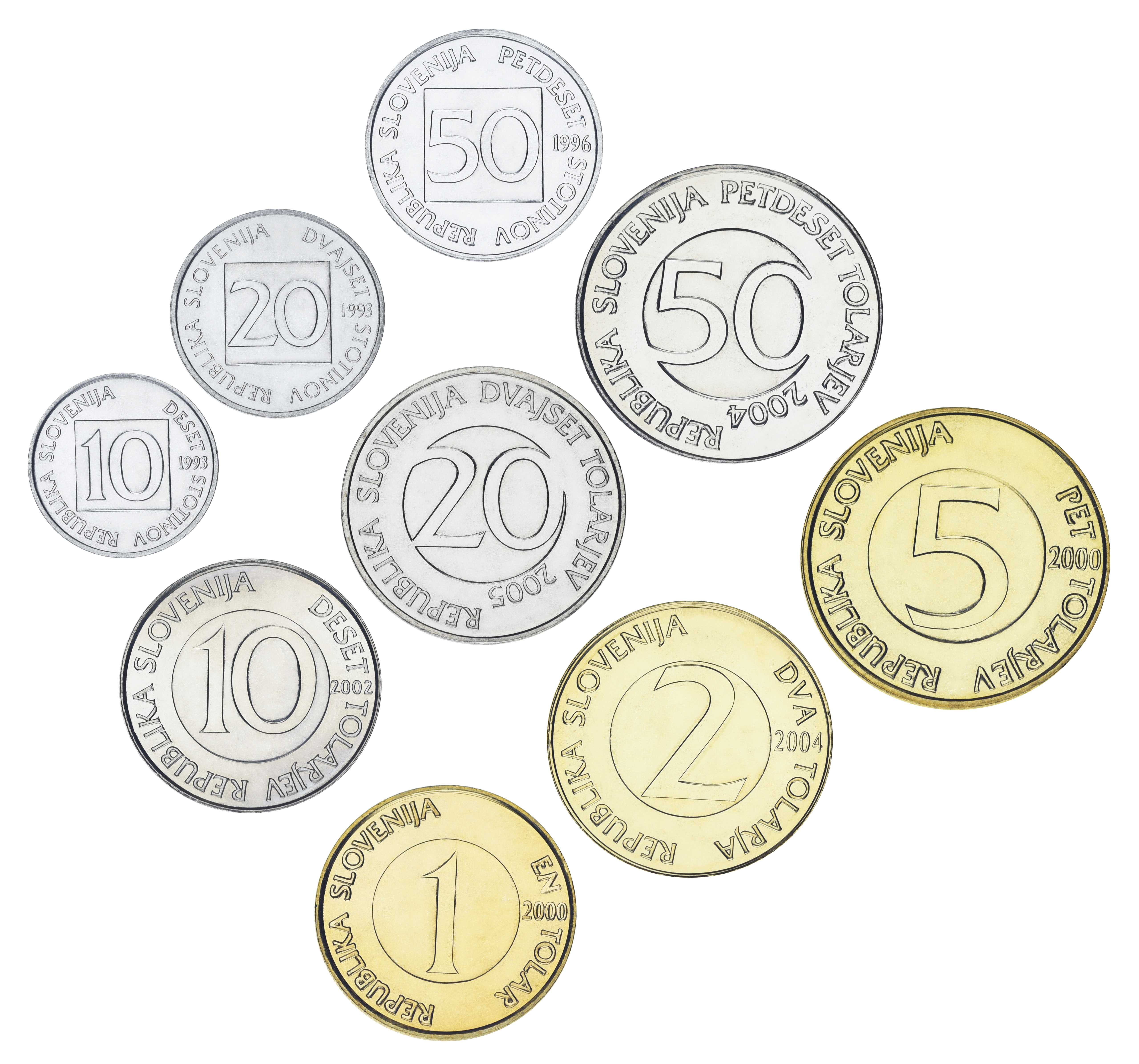 Словения набор из 9 монет 1992-2005 AU-UNC 10, 20, 50 стотинов, 1, 2, 5, 10, 20, 50 толаров