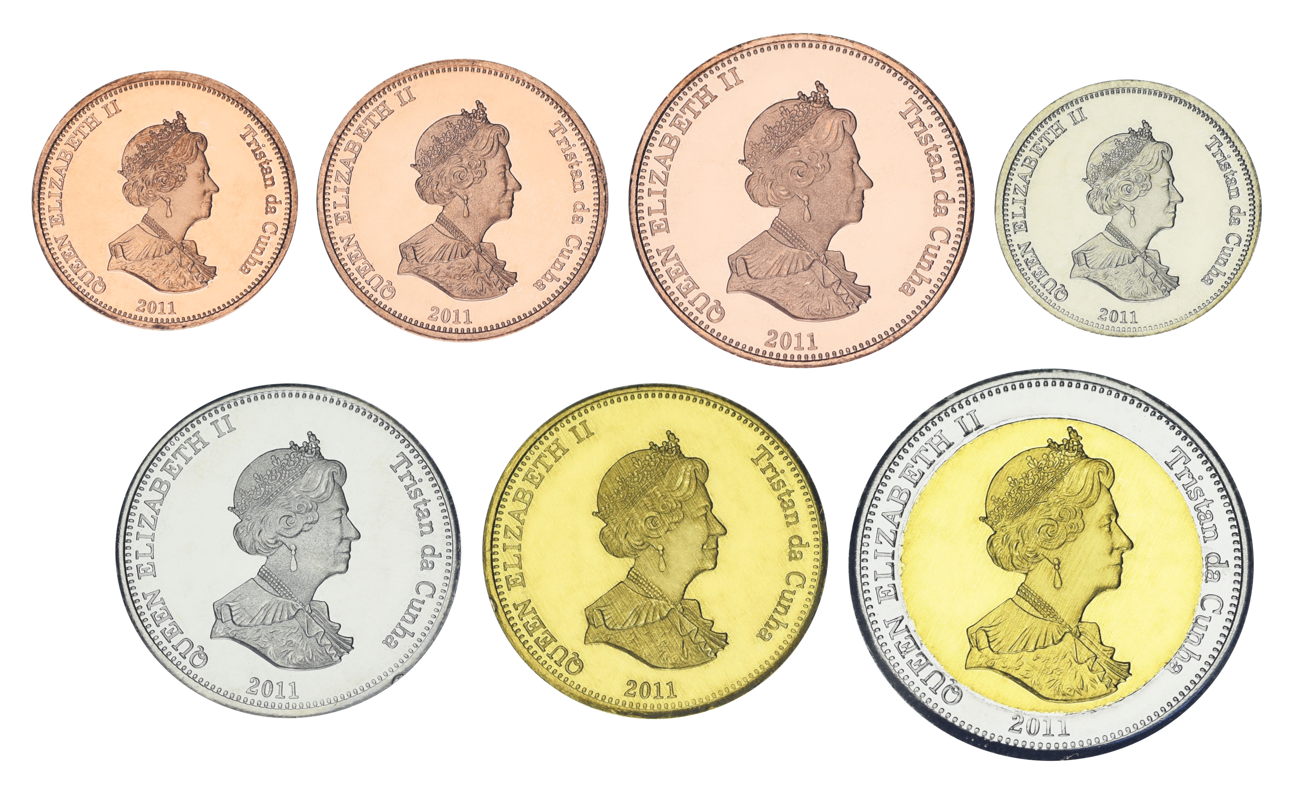 Тристан-да-Кунья набор из 7 монет 2011 UNC Остров Найтингейл 0,5, 1, 2, 5, 10, 20, 25 пенсов