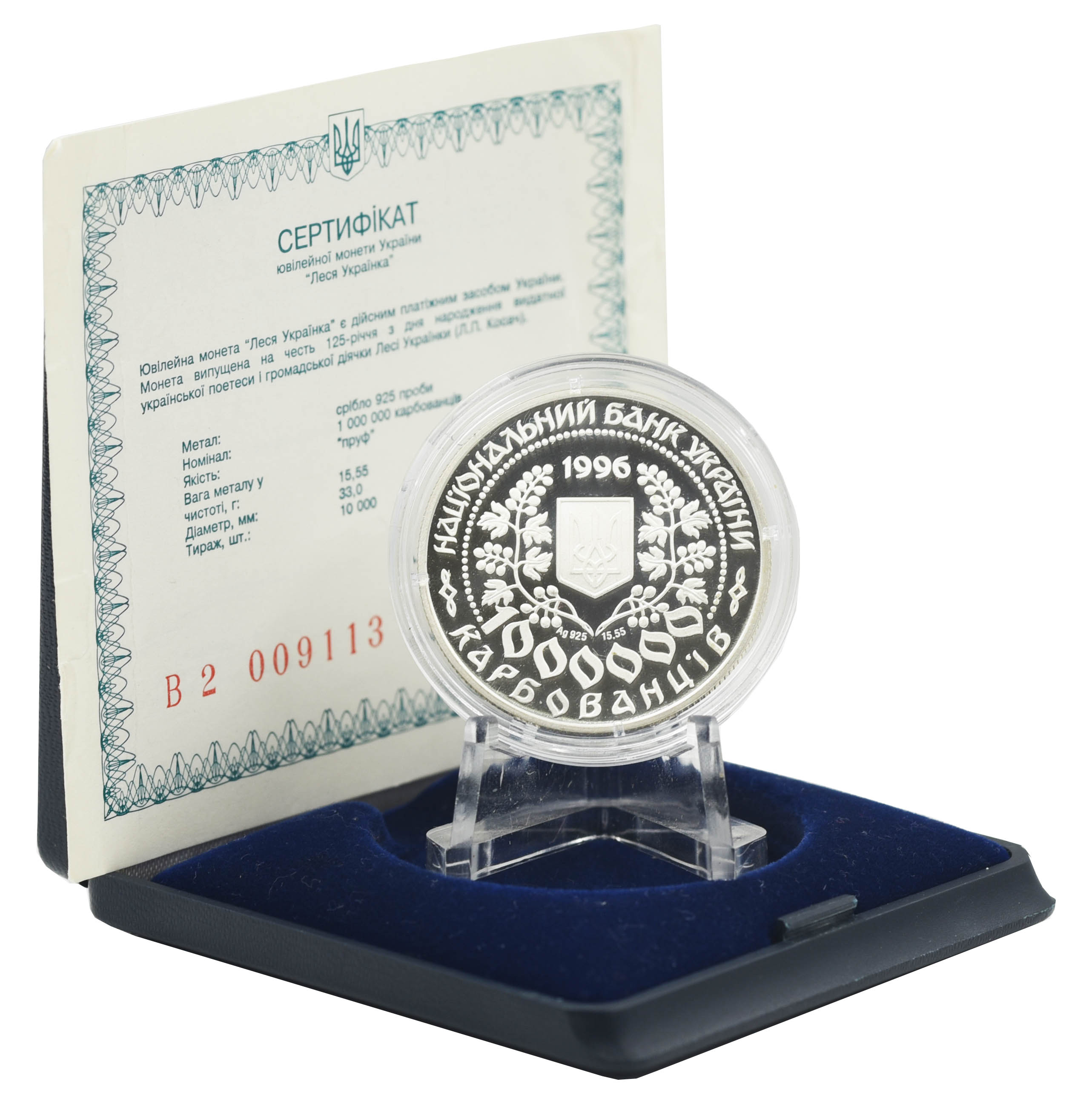 Украина 1000000 карбованцев 1996 Серебро Proof Леся Украинка (Ag 925, 15.55 грамм)