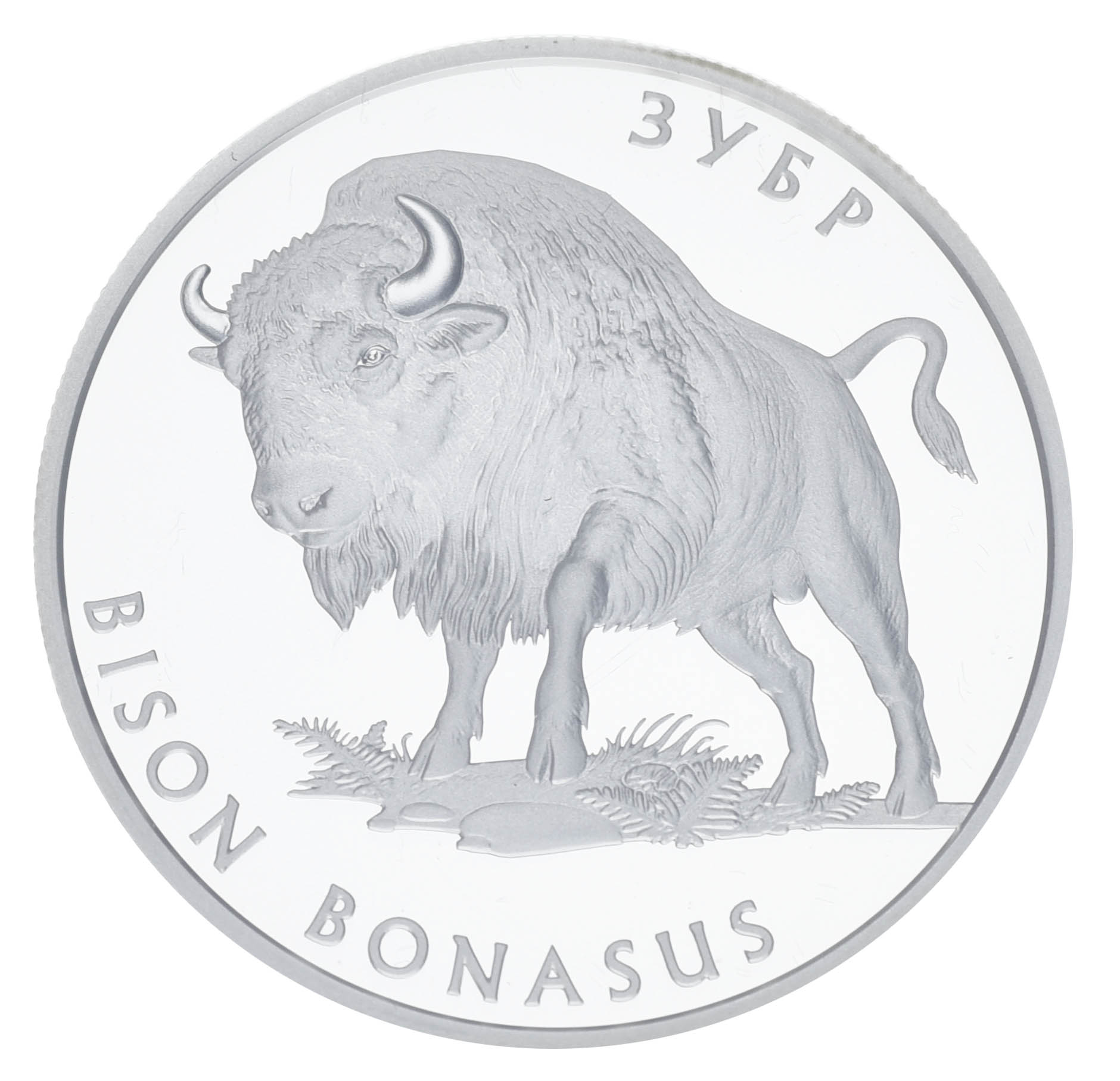 На реверсе монеты изображен зубр, вокруг – круговые надписи: ЗУБР (вверху) и BISON BONASUS (внизу).