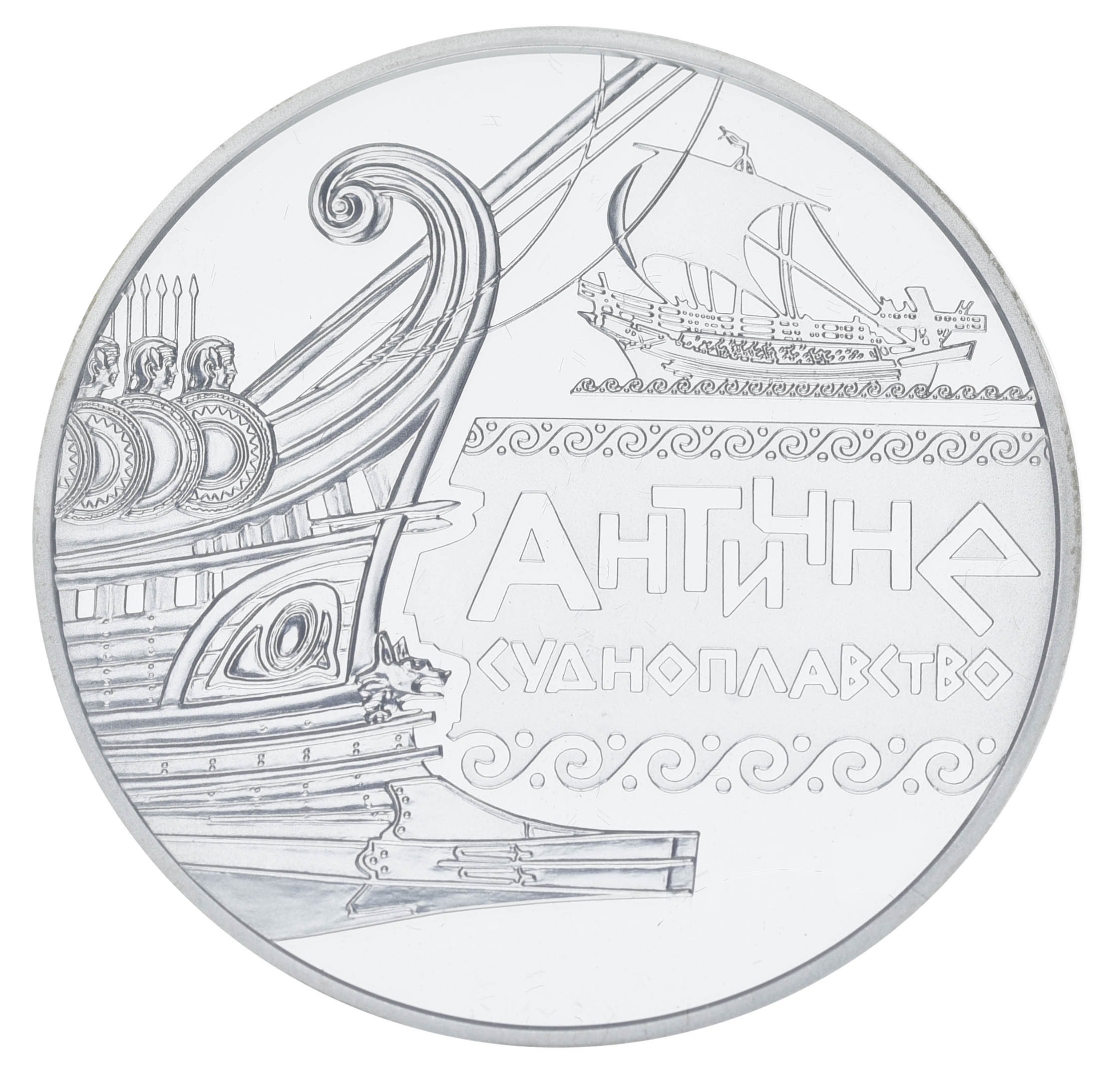 Монета продолжает серию "Морская история Украины", отражающая историю судоходства и судостроения на территории нашего государства. Судостроение, которое являлось одной из основных отраслей производства античных городов Северного Причерноморья, способствовало техническому прогрессу тогдашнего общества, развитию математических знаний, строительной технологии, естественным наукам и т.д. Южный Крым был около двух тысяч лет узловым пунктом морской торговли и районом интенсивной навигации.