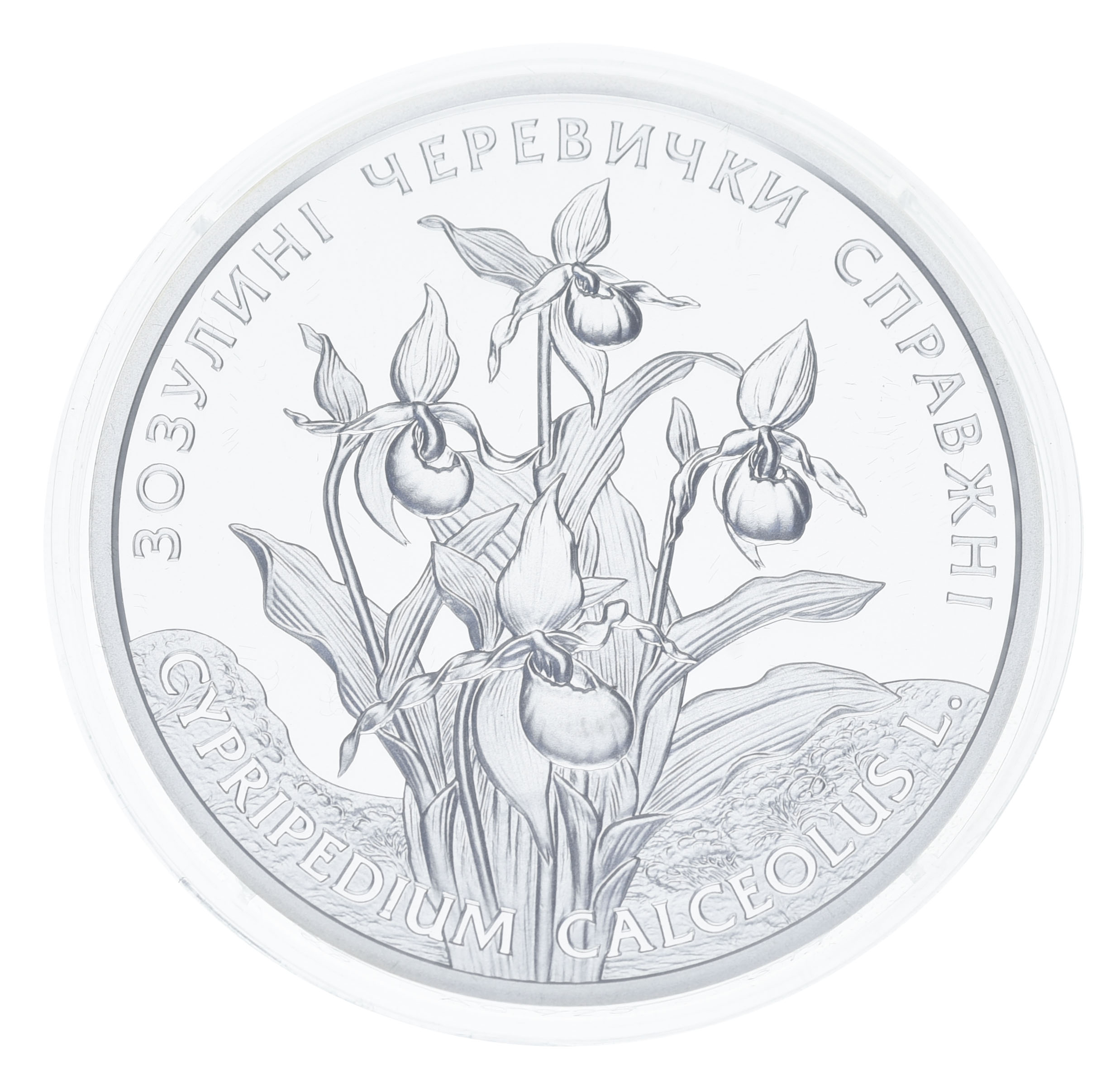Памятная монета из серебра, изготовлена с обеспечением специального уровня качества чеканки пруф. Посвящена кукушкиным башмачкам настоящим, - исчезающему виду многолетнего травянистого растения из семейства кукушкиных, или орхидейных, занесенных в Красную книгу Украины. Эти волшебные цветы, одни из самых известных орхидей Северного полушария. Своей оригинальной красотой напоминают башмачки разных народов.
