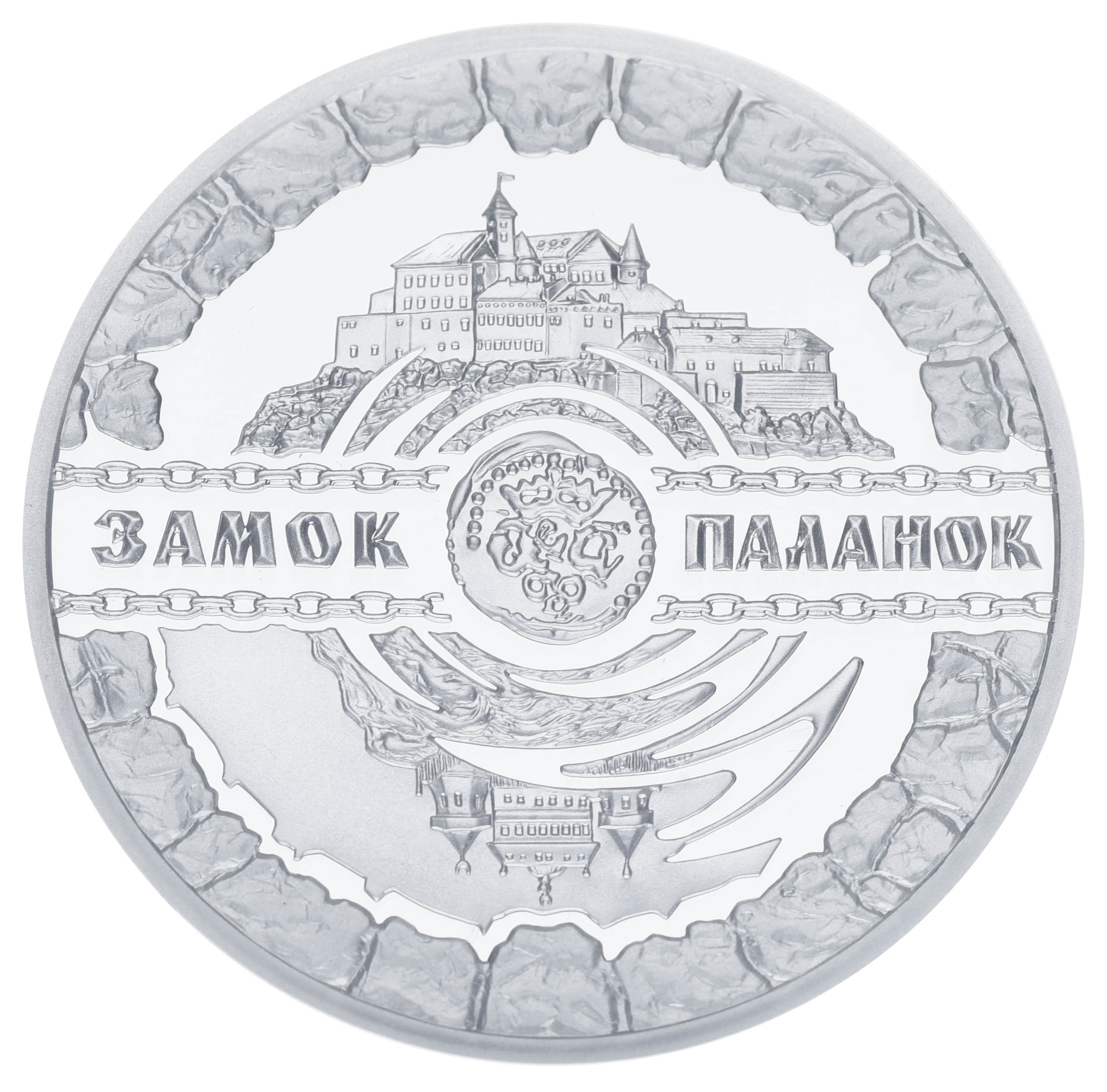 На реверсе монеты размещено: вверху Замок Паланок, внизу – стилизованное отражение в воде старого замка (изображение из древних гравюр), в центре – стилизованное изображение колодца, в который бросили древнюю монету, от которой расходятся круги воды; слева и справа надписи: ЗАМОК ПАЛАНОК; по кругу – каменная кладка, разделенная цепями.