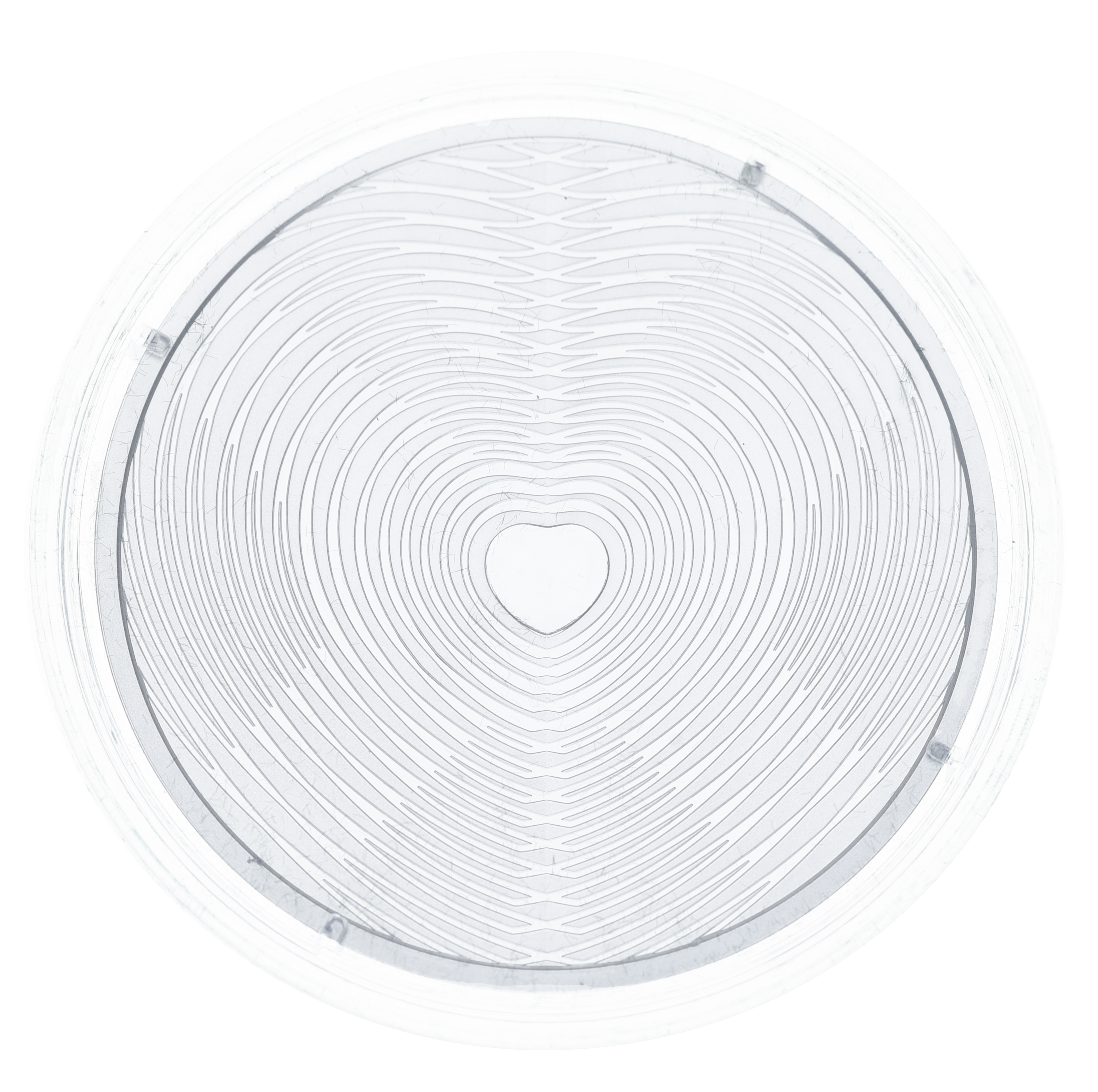 На реверсе монеты на зеркальном фоне рельефно изображены сердце, от которого равномерно расходятся волны. Стилизованная композиция является символом искренней и всеобъемлющей любви, вибрации которой достигают самых сокровенных глубин души.