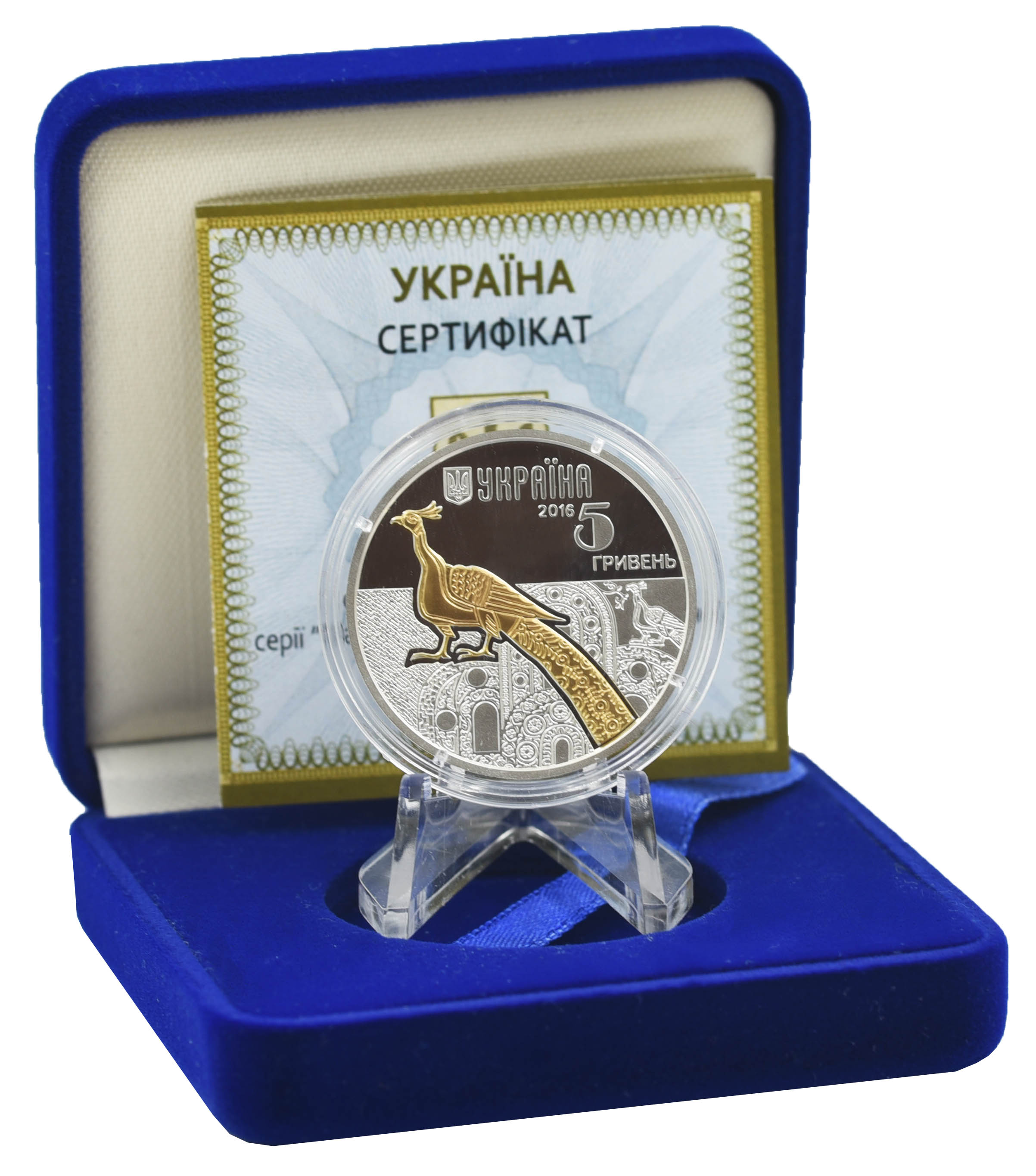 Украина 5 гривен 2016 Серебро UNC Фауна - Павлин (Ag 925, пол-унции, 15,55 грамм)