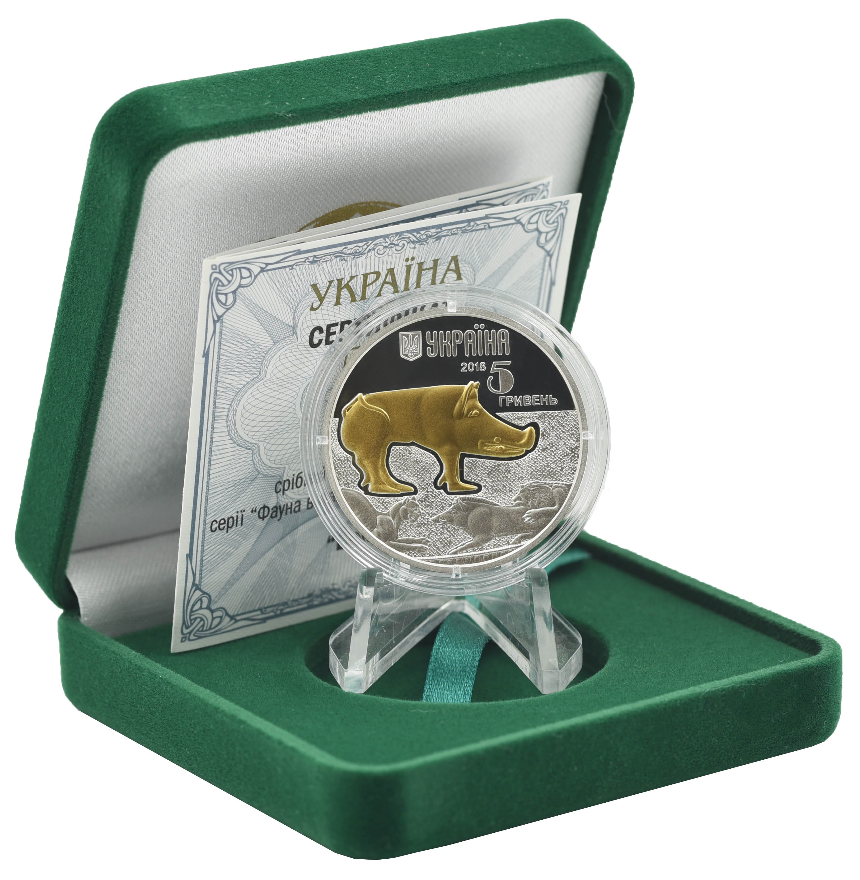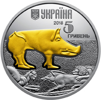 Украина 5 гривен 2018 Серебро UNC Вепр (Кабан) (Ag 925, пол-унции, 15,55 грамм)
