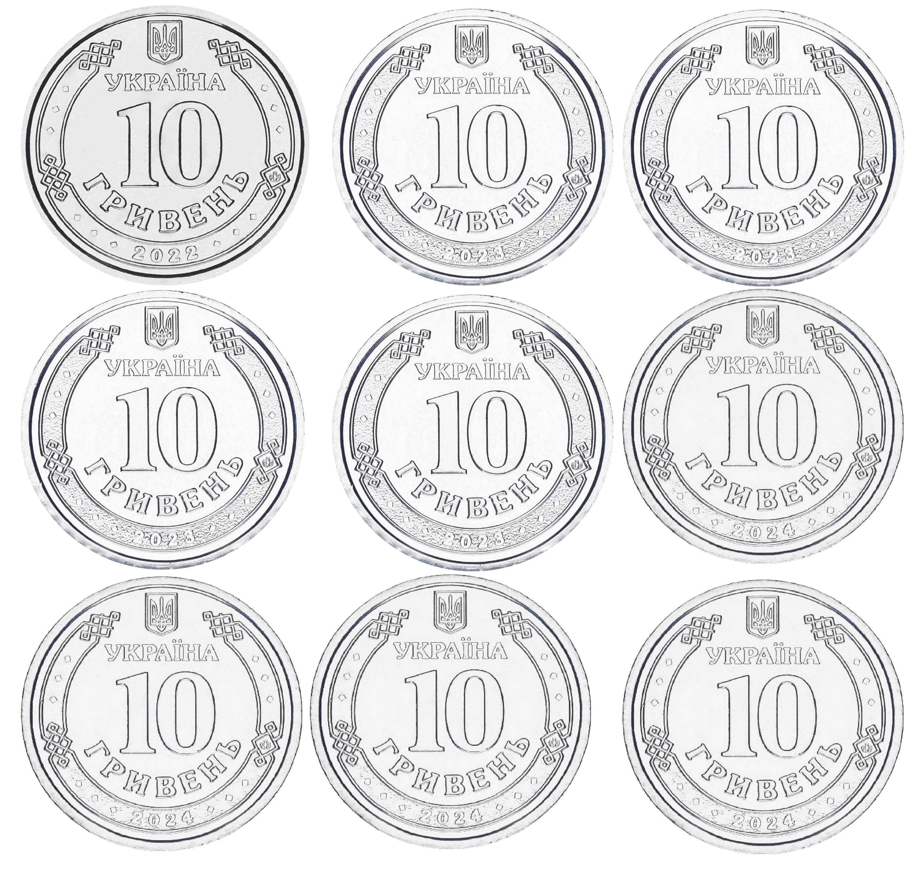 Украина набор из 9 монет по 10 гривен 2022-2024 UNC Вооруженные силы Украины (ВСУ)