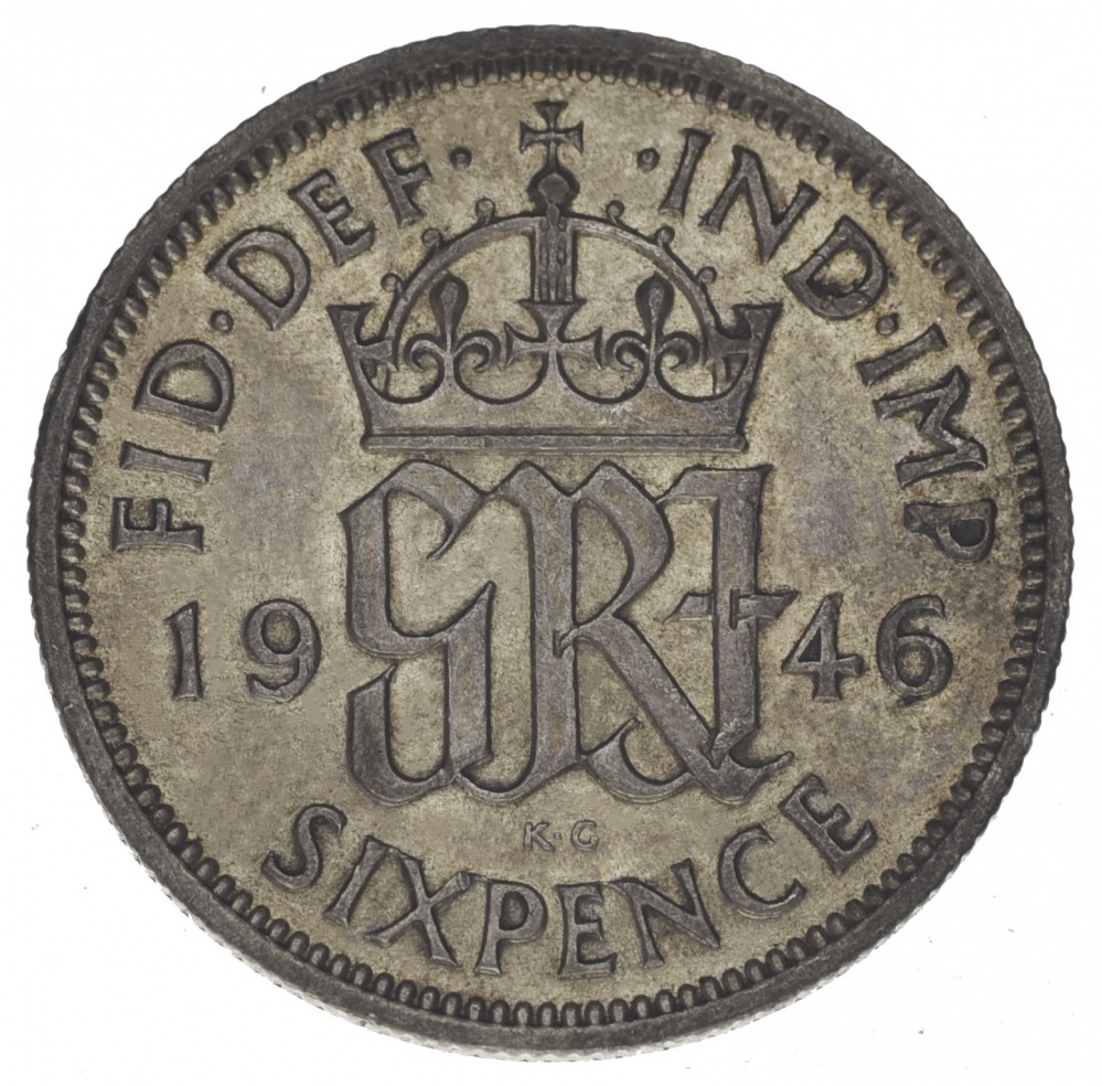 Великобритания 6 пенсов 1946 Серебро F-VF (Ag 500, 2,83 грамма)