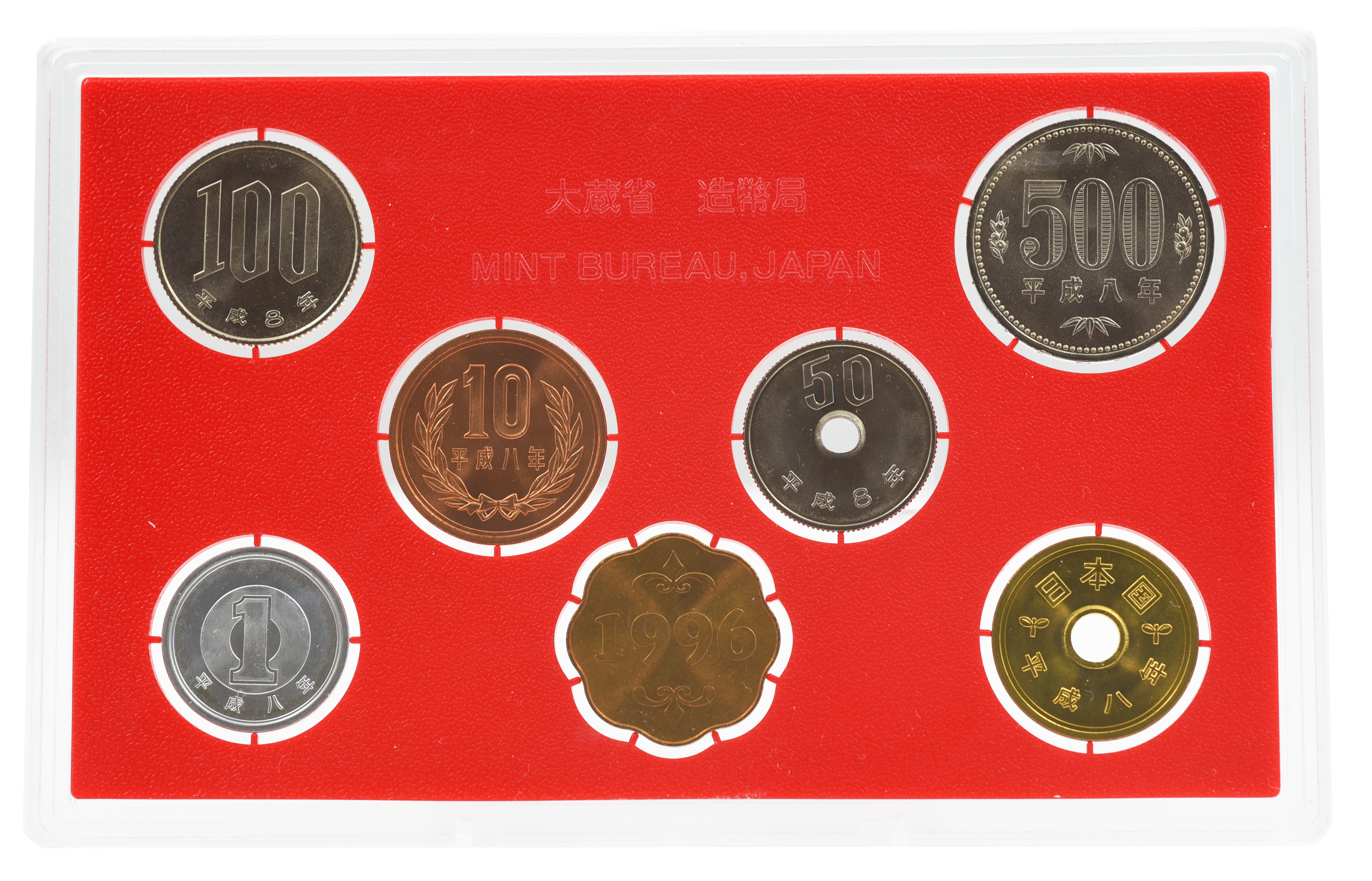 Япония набор из 7 монет 1996 UNC Год Крысы (мыши) 1, 5, 10, 50, 100, 500 йен, памятная медаль