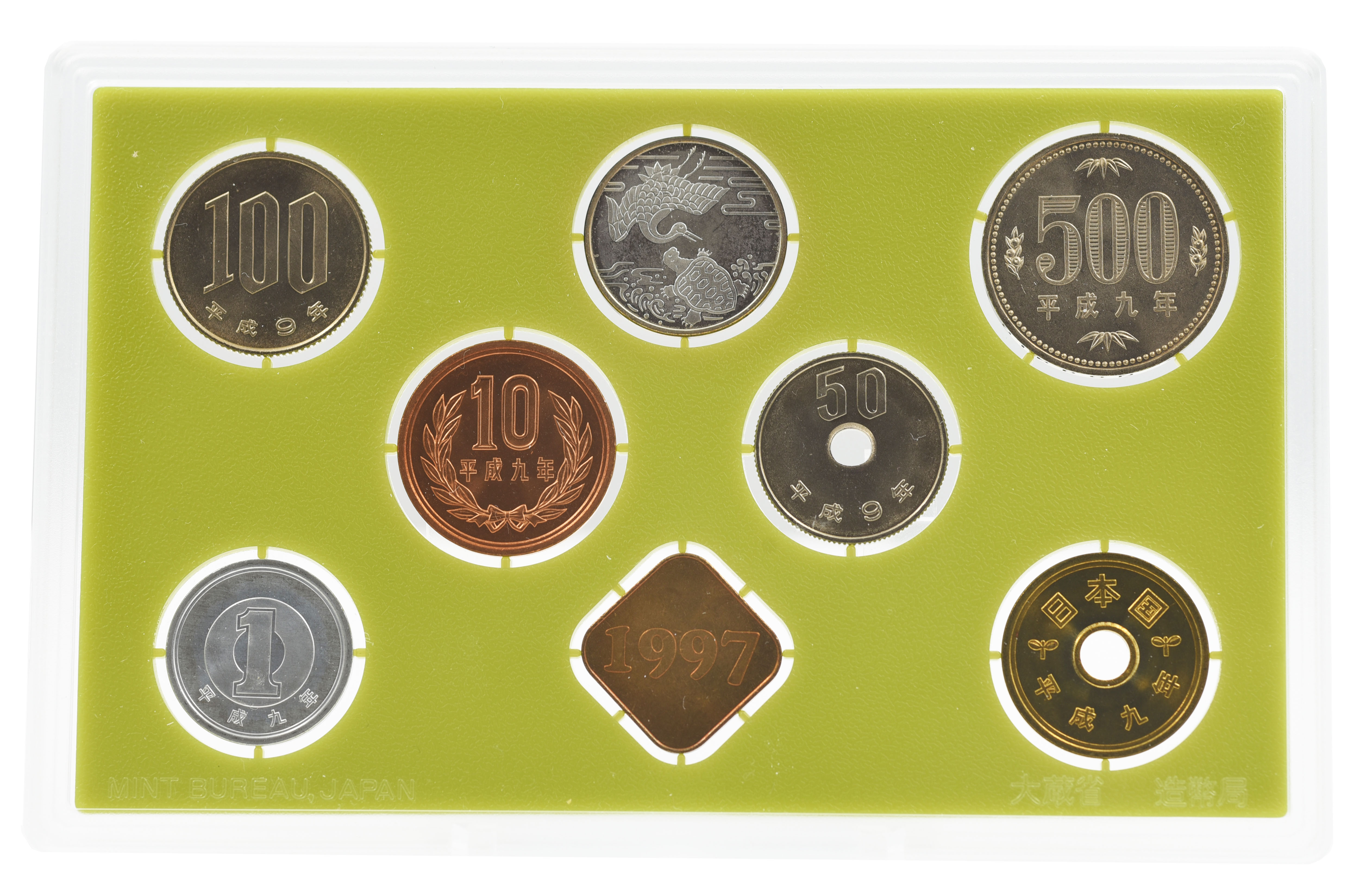 Япония набор из 8 монет 1997 UNC Год Быка 1, 5, 10, 50, 100, 500 йен, медаль, серебряная медаль