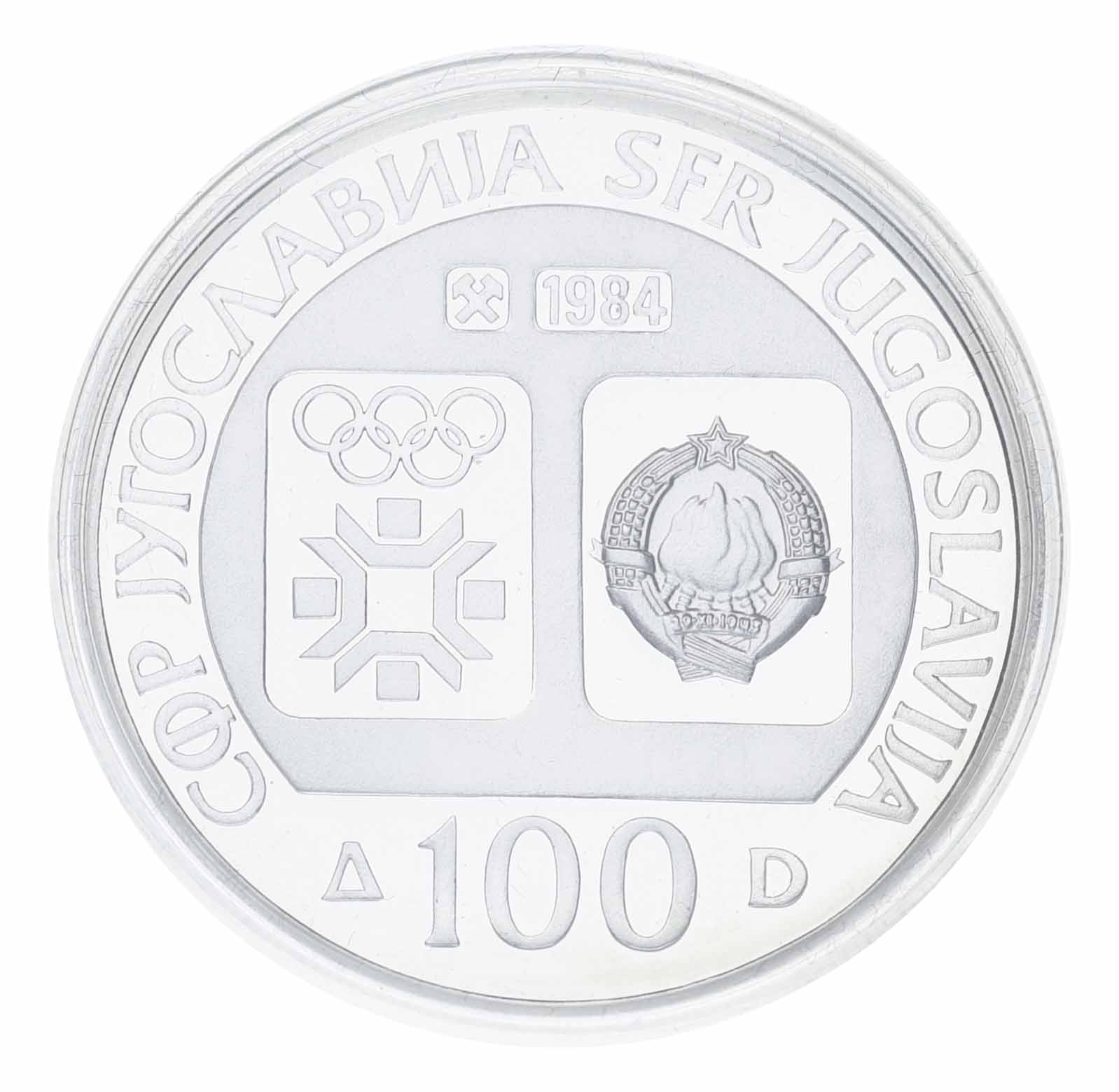 Югославия 100 динаров 1984 Серебро Proof XIV зимние Олимпийские игры в г. Сараево 1984 - Конькобежный спорт