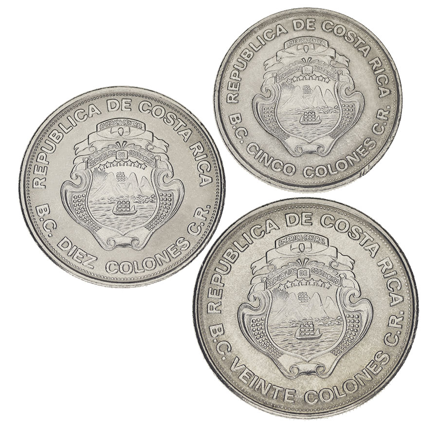 Коста-Ріка набір з 3 монет одна тисячі дев'ятсот сімдесят п'ять VF-AU 25 років Центральному банку 5, 10, 20 колонів