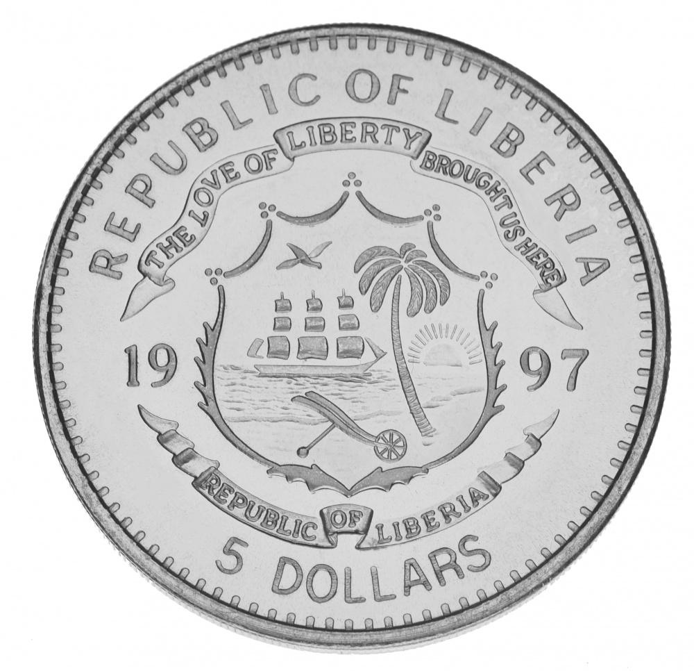 Ліберія 5 доларів 1 997 Proof Зебра