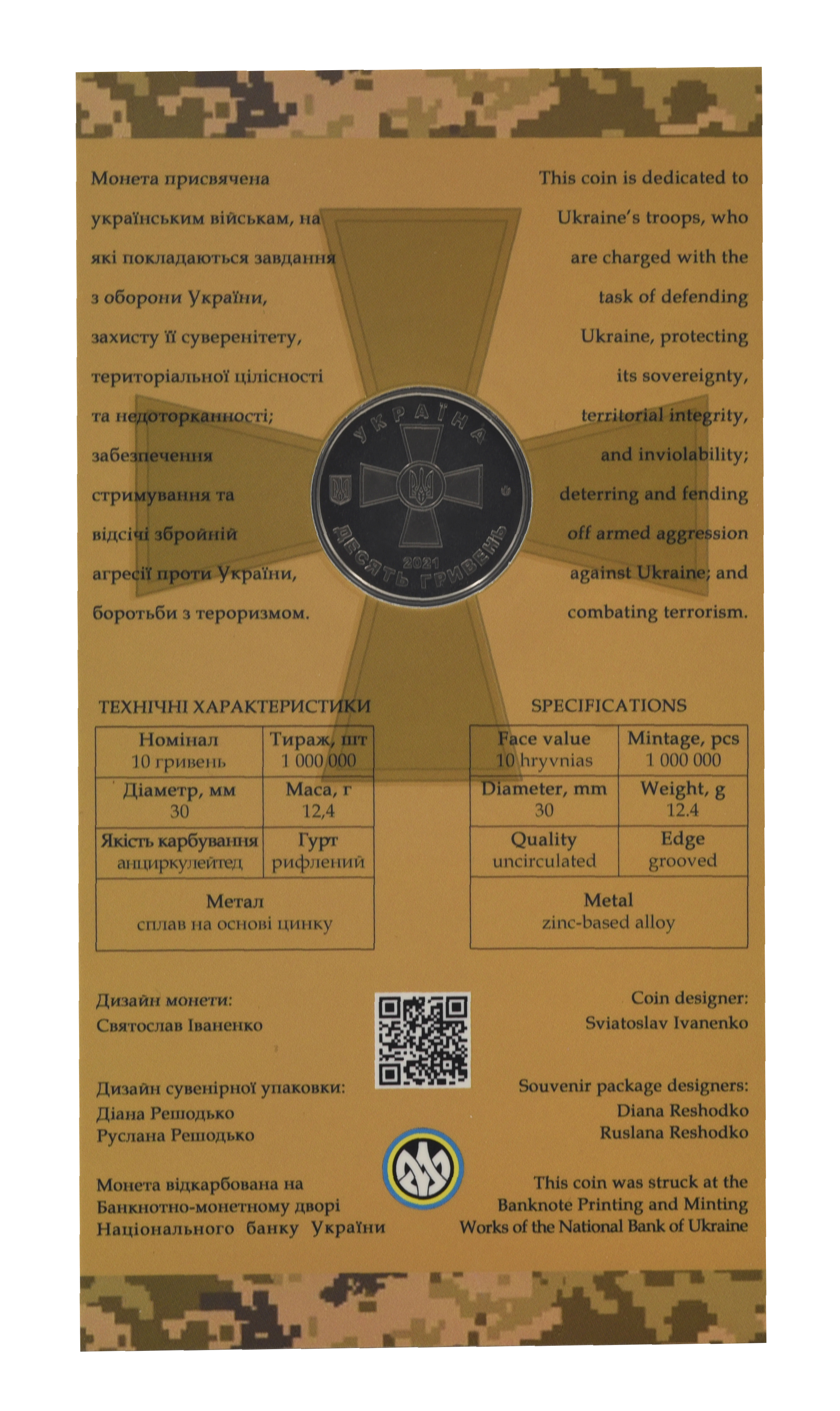 Україна 10 гривень 2021 UNC Збройні сили України (ЗСУ) у сувенірній упаковці НБУ