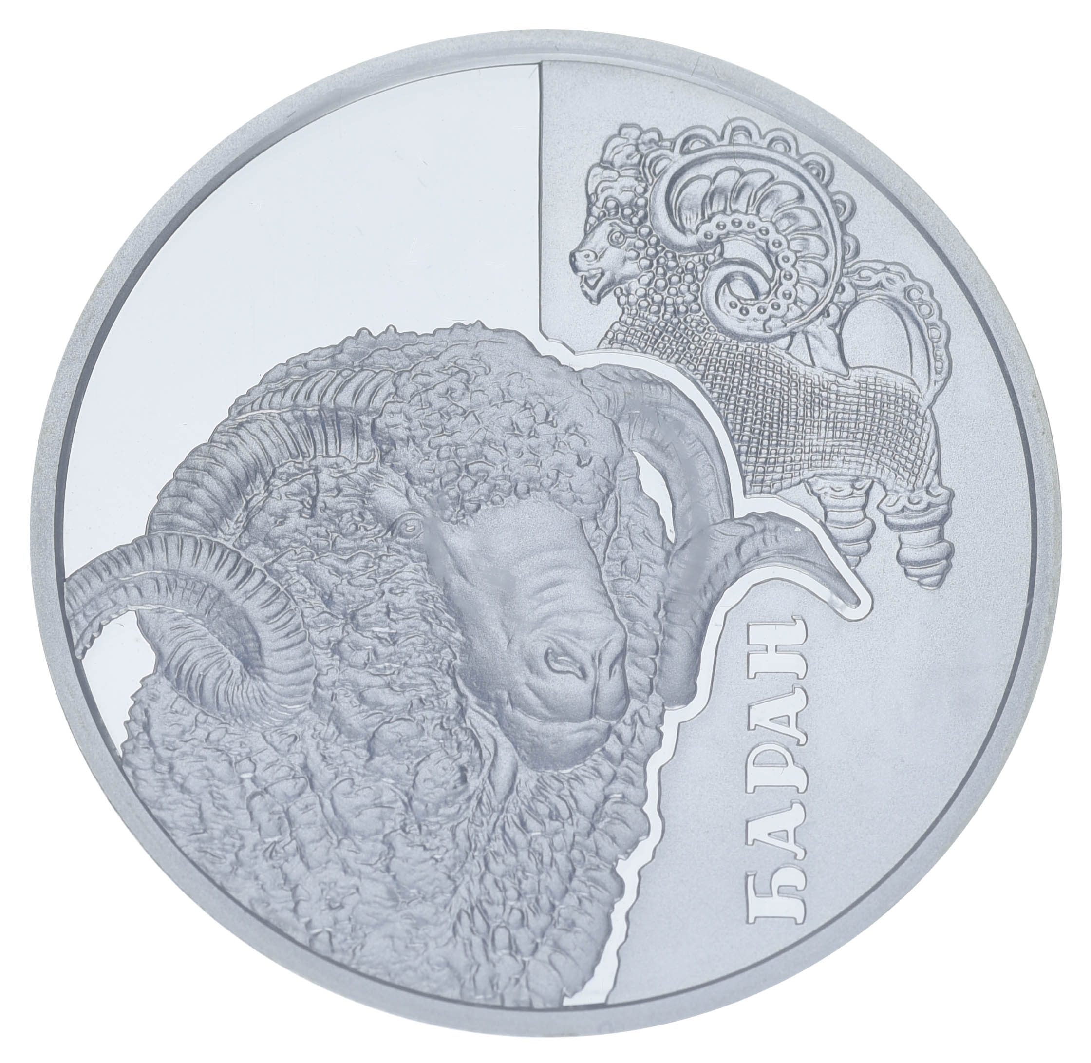 На реверсі монети ліворуч на дзеркальному тлі зображено голову барана, праворуч від якого на матовому тлі розміщено вертикальний напис БАРАН (унизу) та зображення опішнянського керамічного барана (Полтавщина).